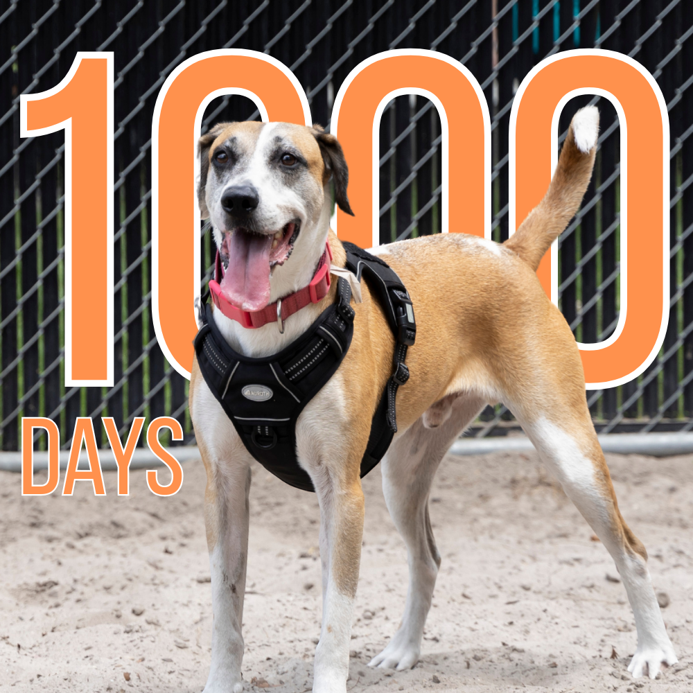 Today, we’re sharing Brady, our longest resident, who just hit a milestone—1,000 days in our care. Before coming to us, Brady spent time at another shelter, and while he’s been lucky enough to stay with some amazing long-term fosters during the majority of his time with us, he really deserves a forever home of his own.