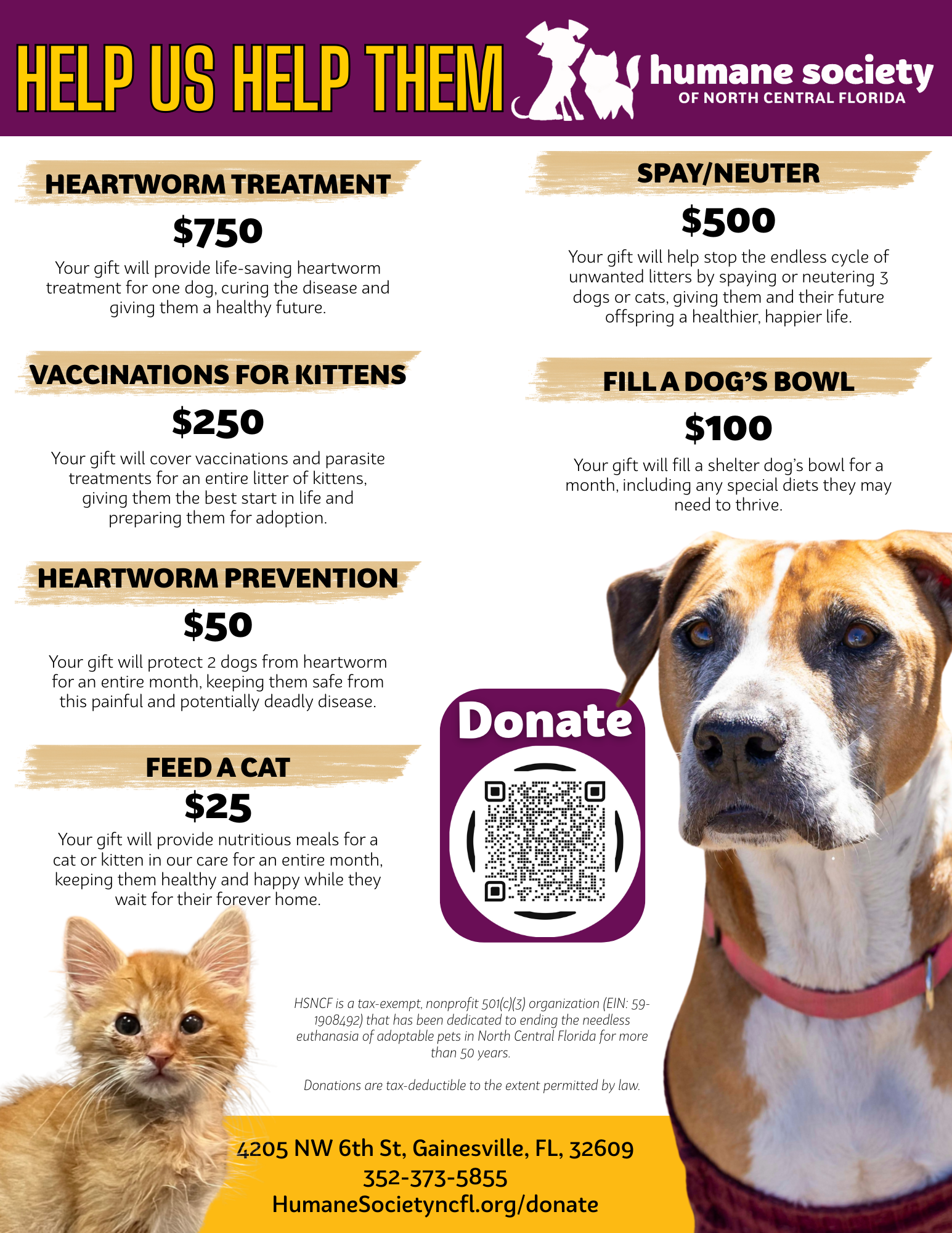 Contact us at Development@HumaneSocietyNCFL.org — we’d love to support your efforts!